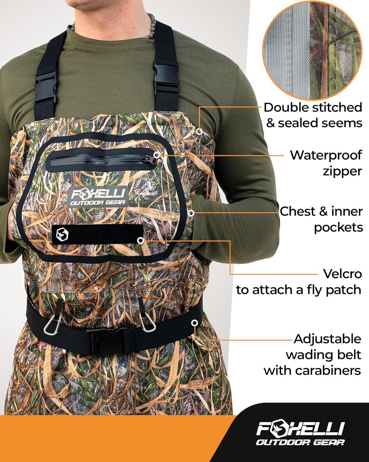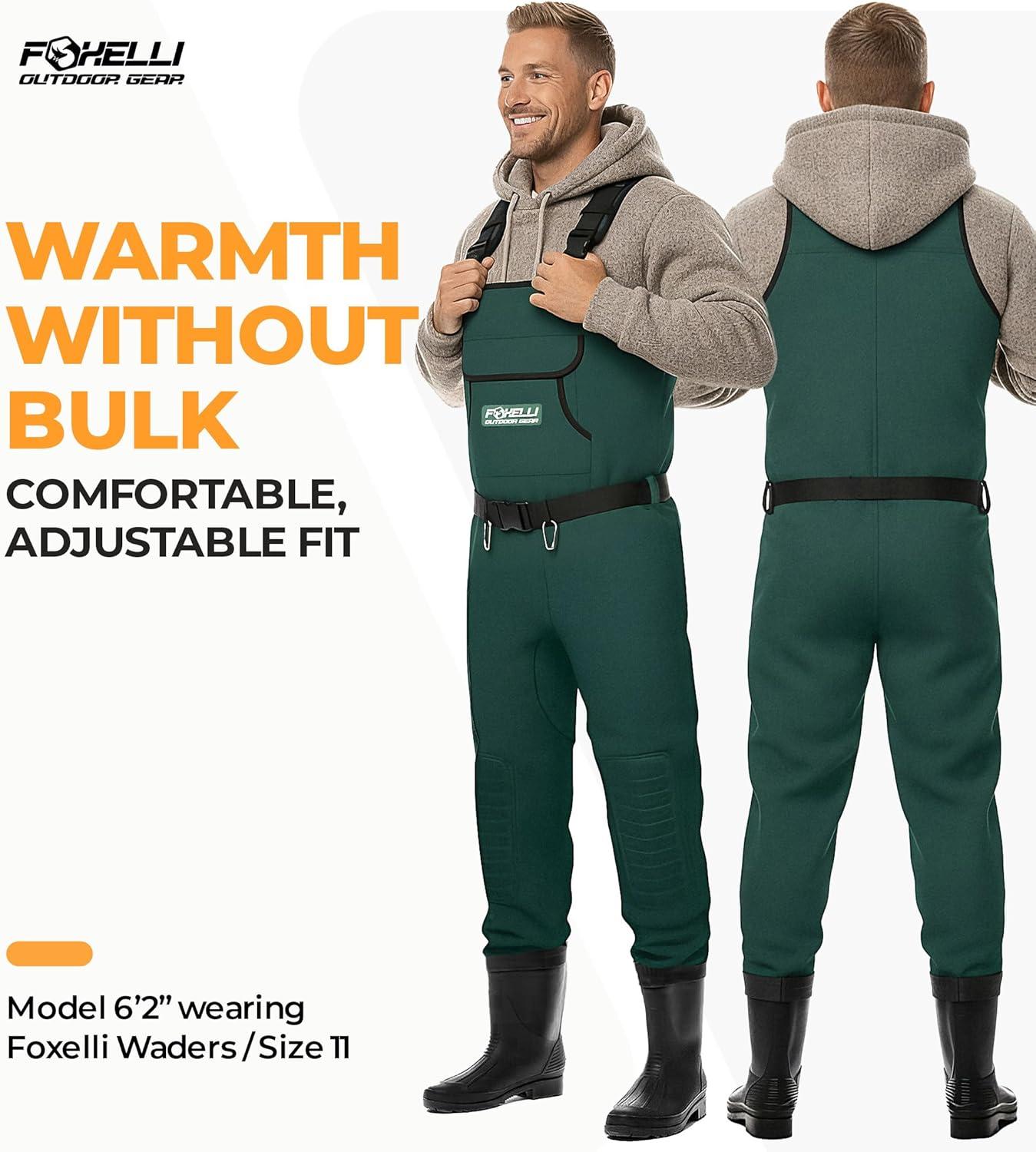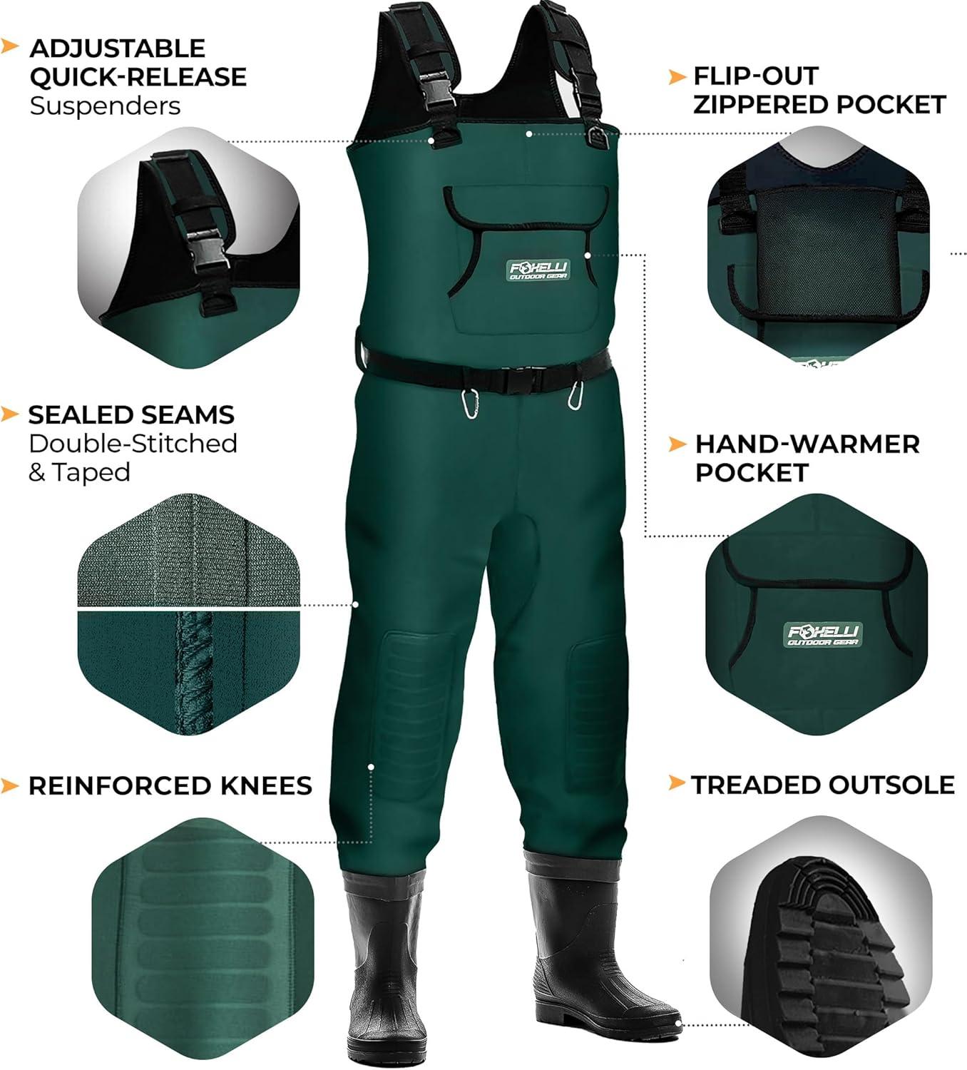 Foxelli Chest Waders, Waterproof 4mm Neoprene Hunting & Fishing Waders for Men & Women with Boots(Green)
