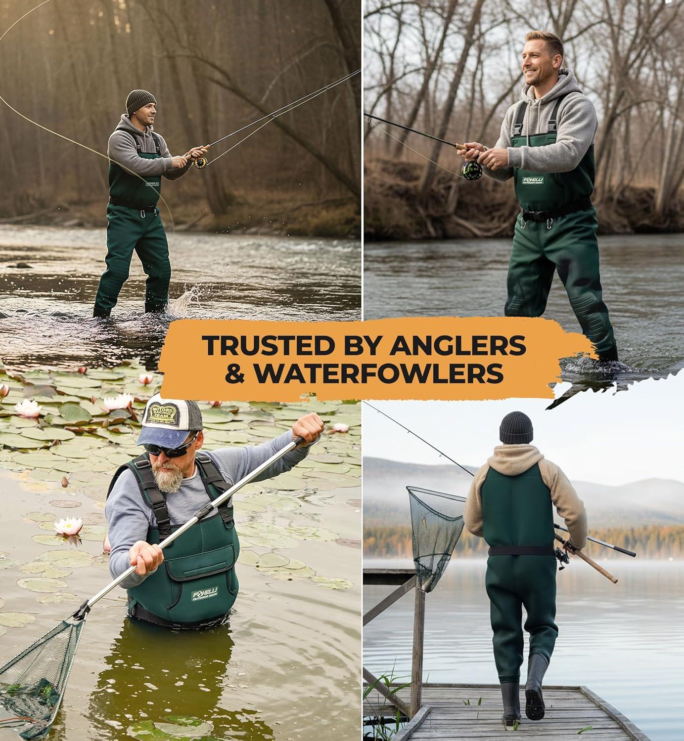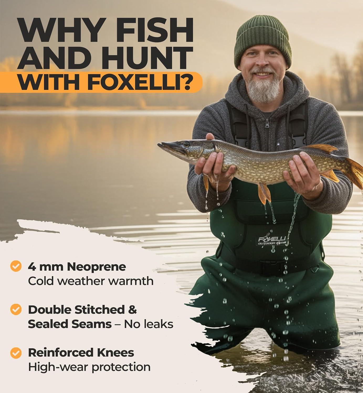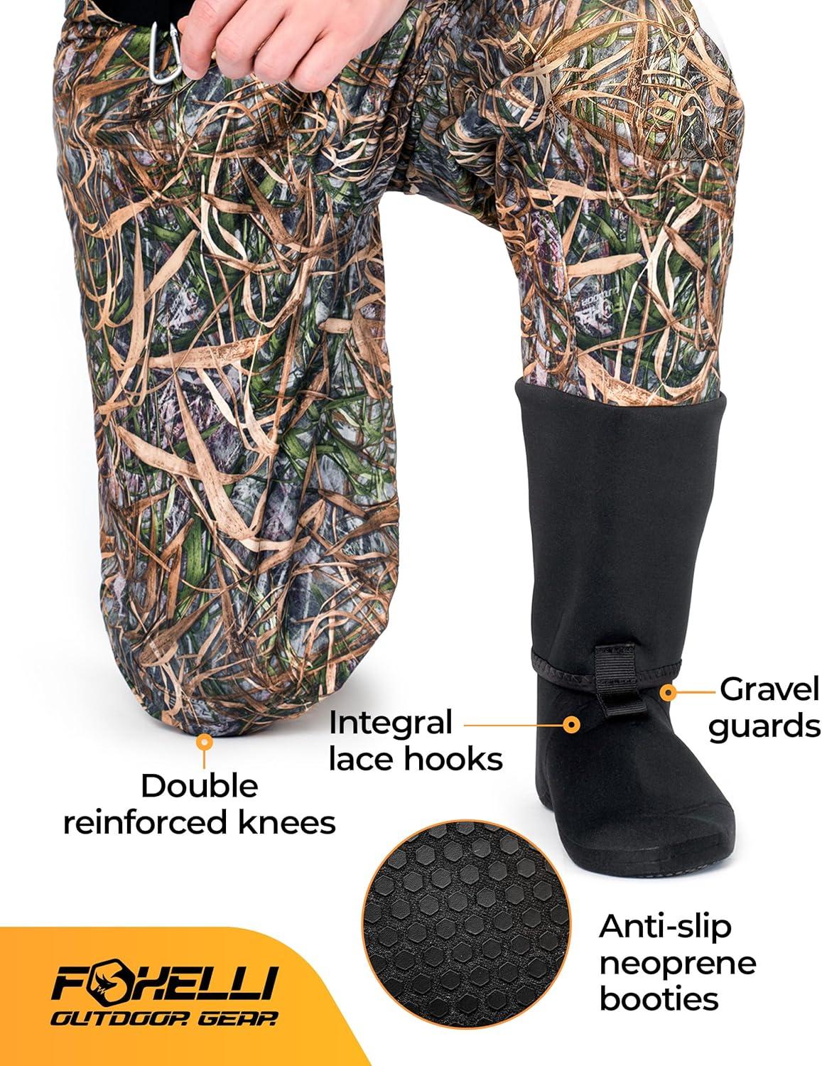 Foxelli Chest Waders, Waterproof 4mm Neoprene Hunting & Fishing Waders for Men & Women with Boots(Green)