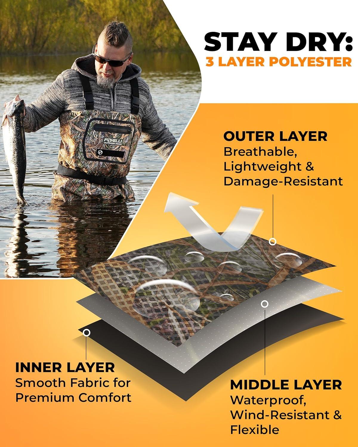 Foxelli Breathable Waders – Fly Fishing Stockingfoot Waders for Men and Women(Camo)