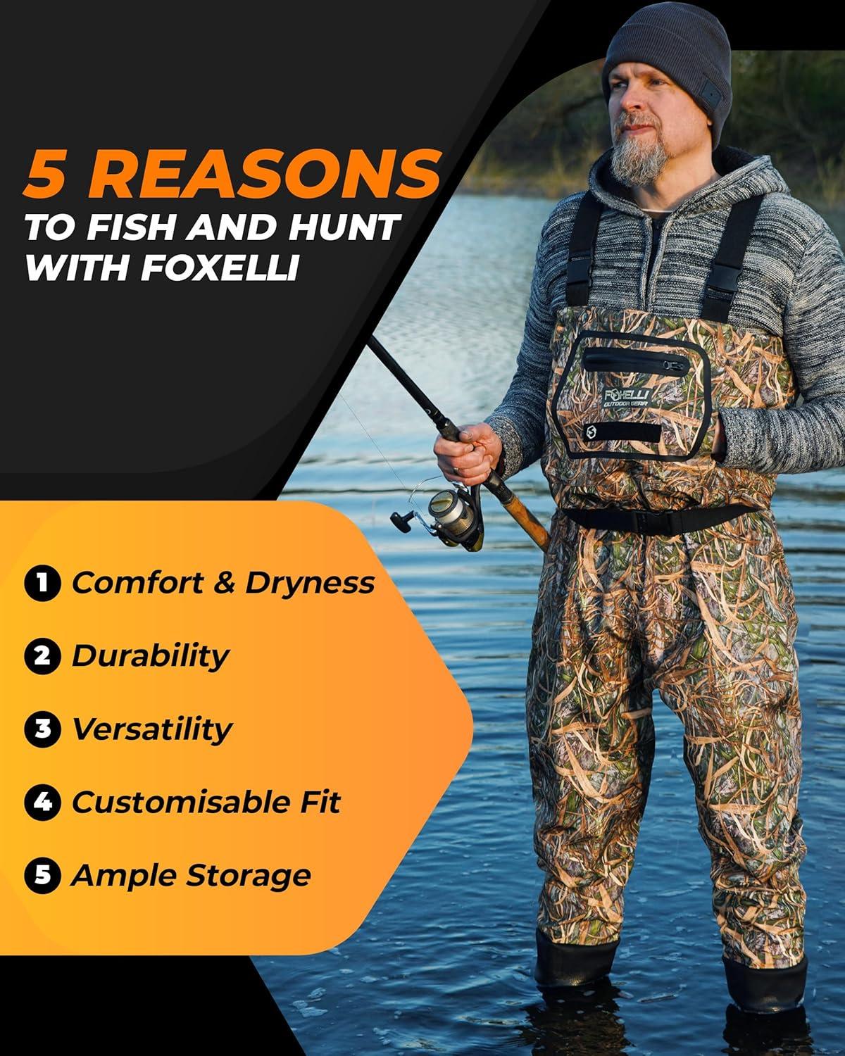 FOXELLI Hunting Waders and Trekking Poles—engineered for the wild. Stay dry, stay strong, and save with our limited-time promo!