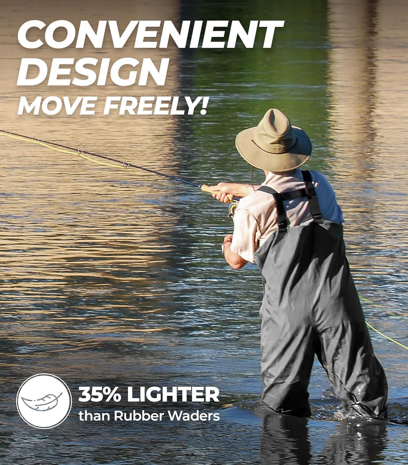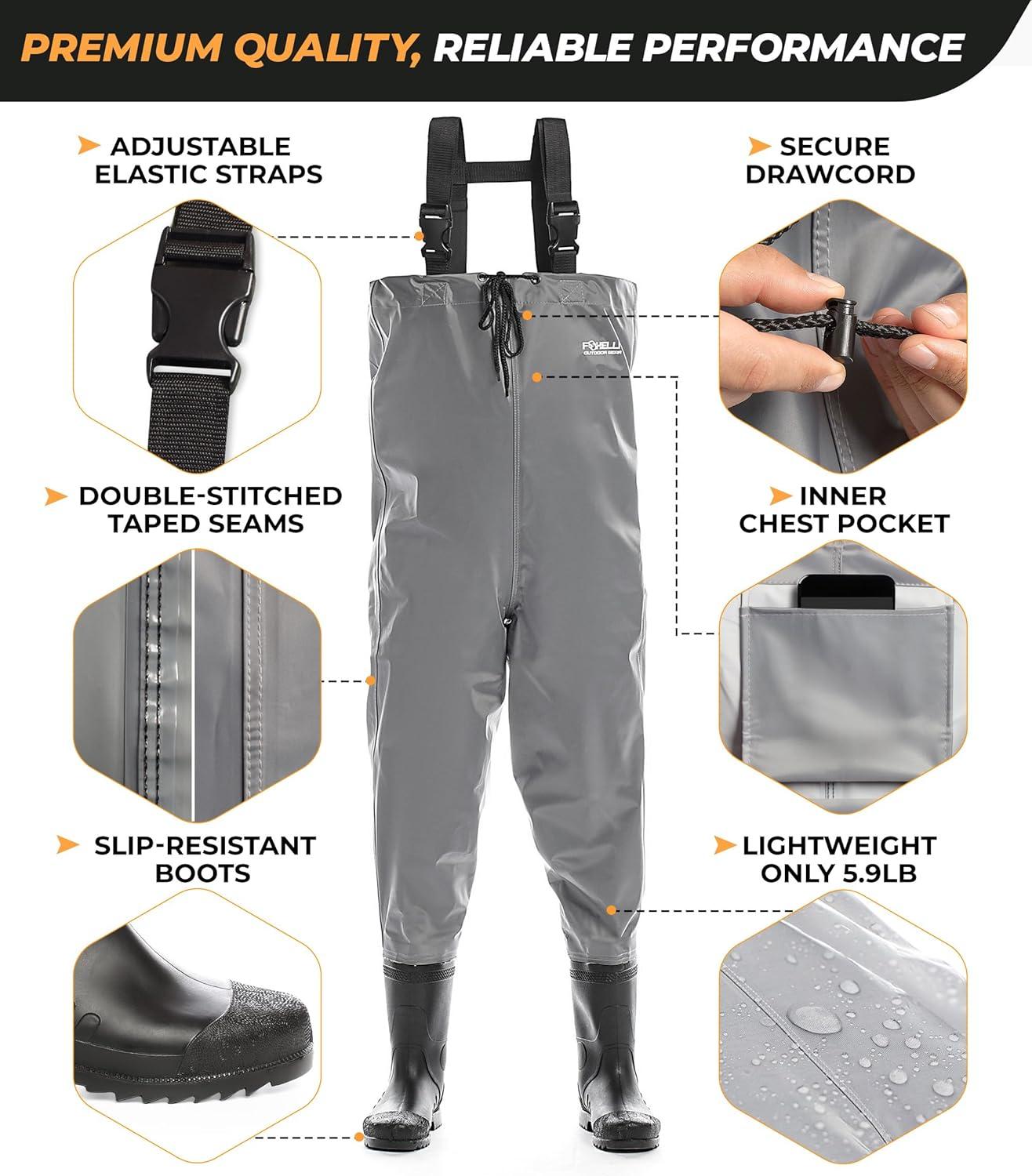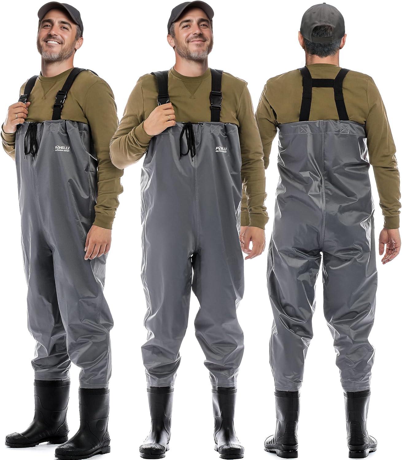 Foxelli Chest Waders – 2-ply Nylon/PVC Waterproof Lightweight Fishing Waders for Men & Women with Boots(Grey)