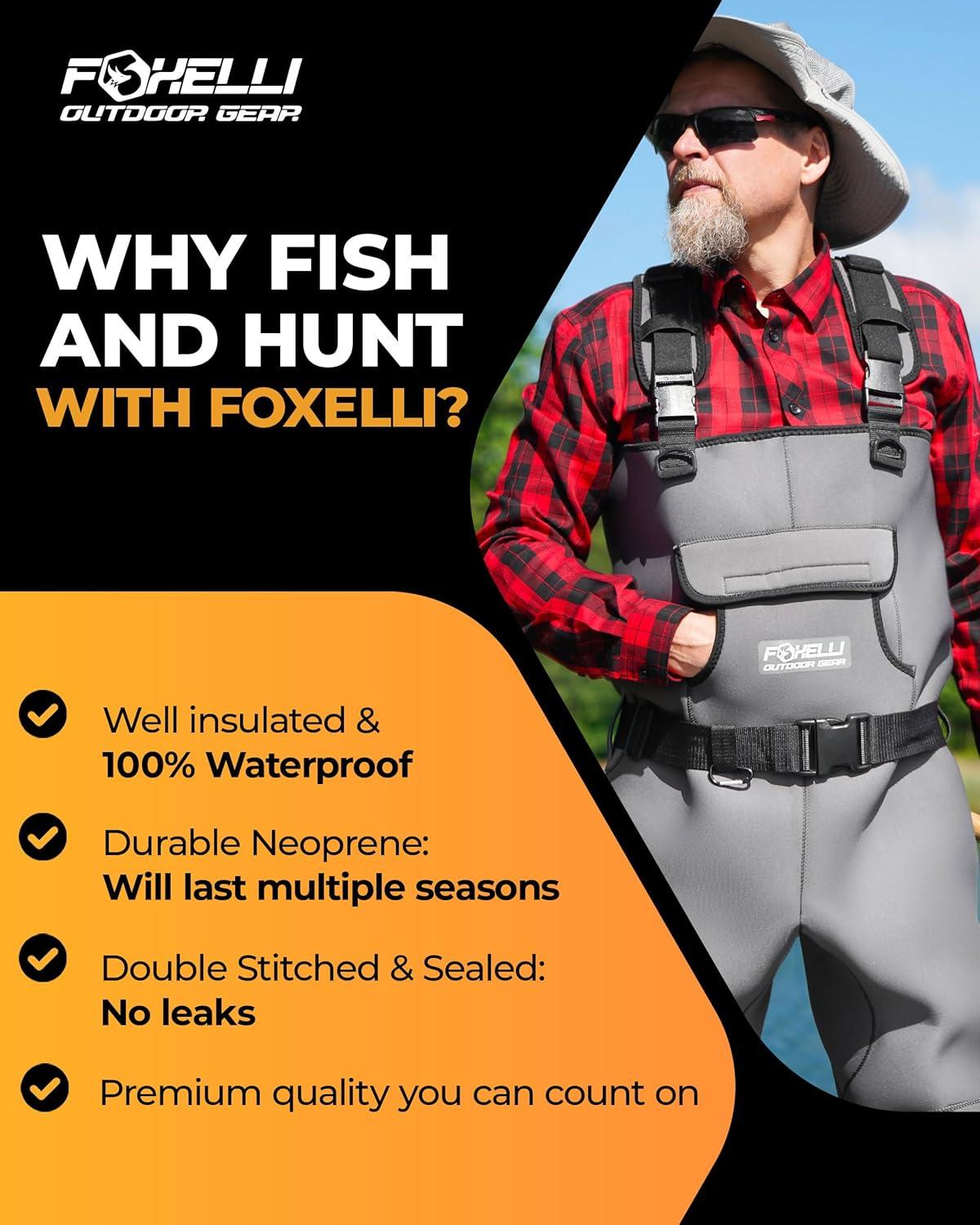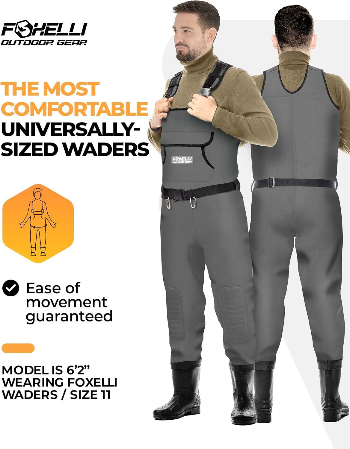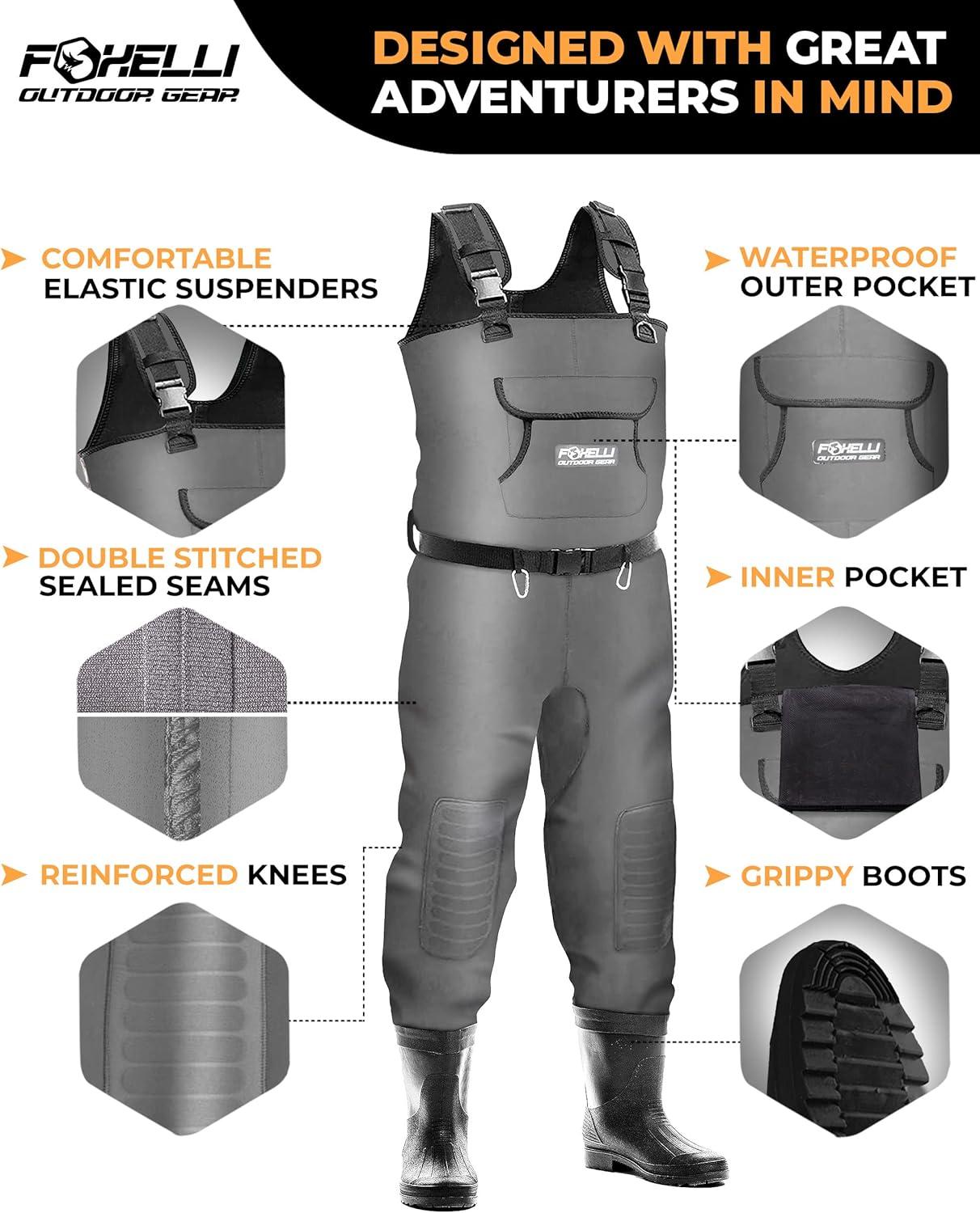 Foxelli Chest Waders, Waterproof 4mm Neoprene Hunting & Fishing Waders for Men & Women with Boots(Grey)