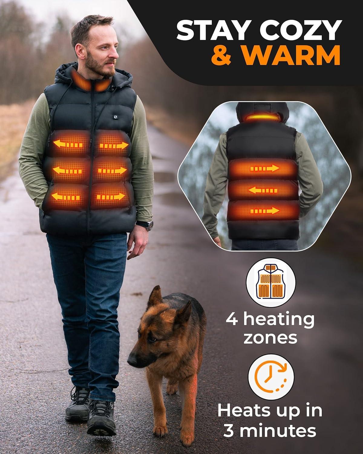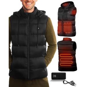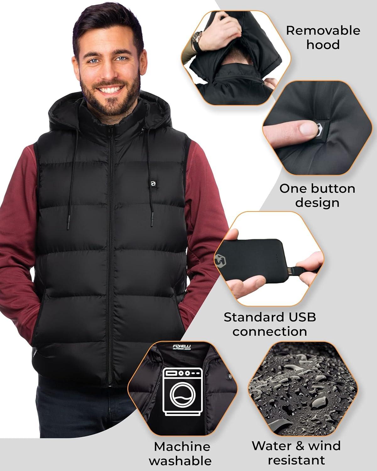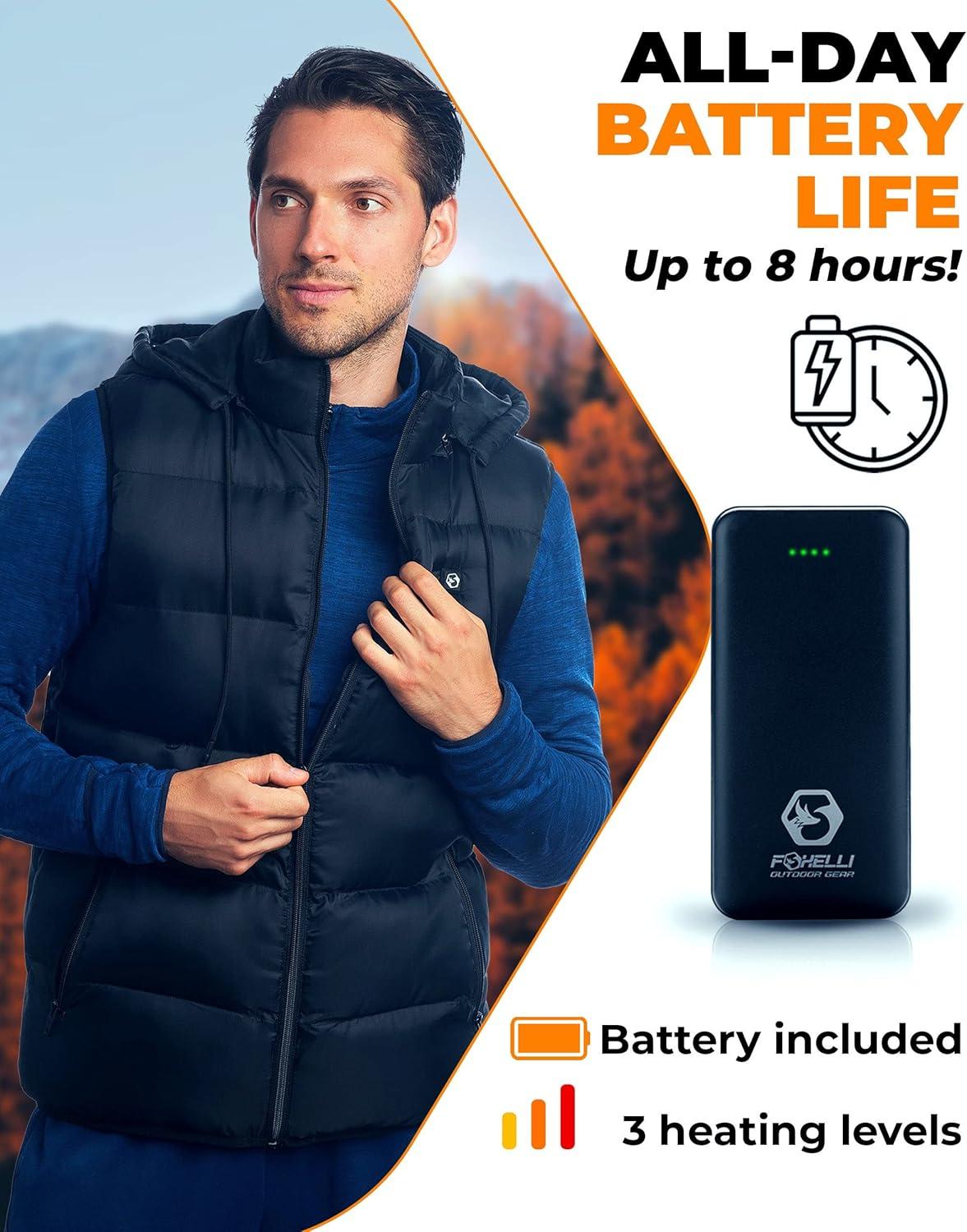 Foxelli Men’s Lightweight Heated Vest with Battery Pack(Black)