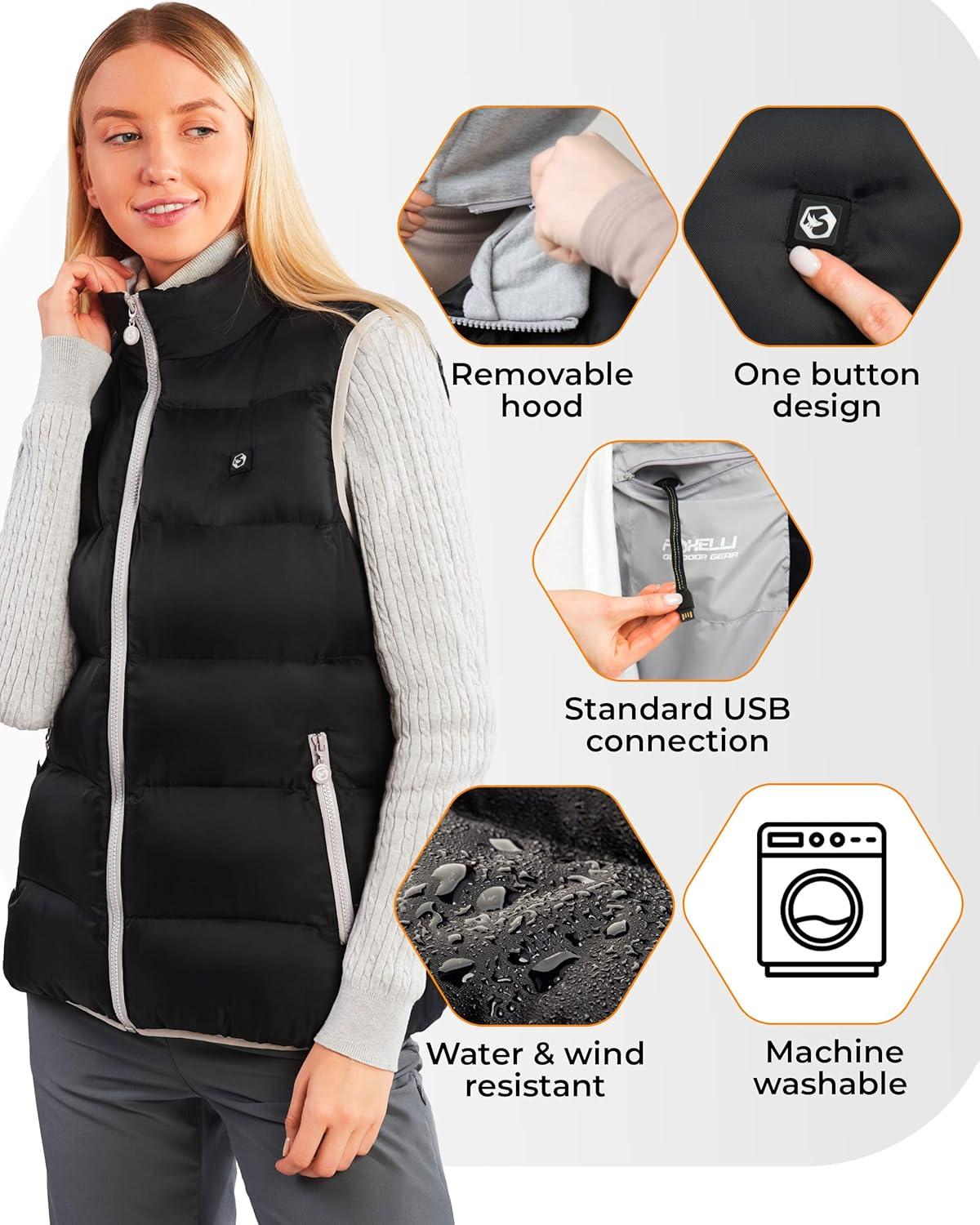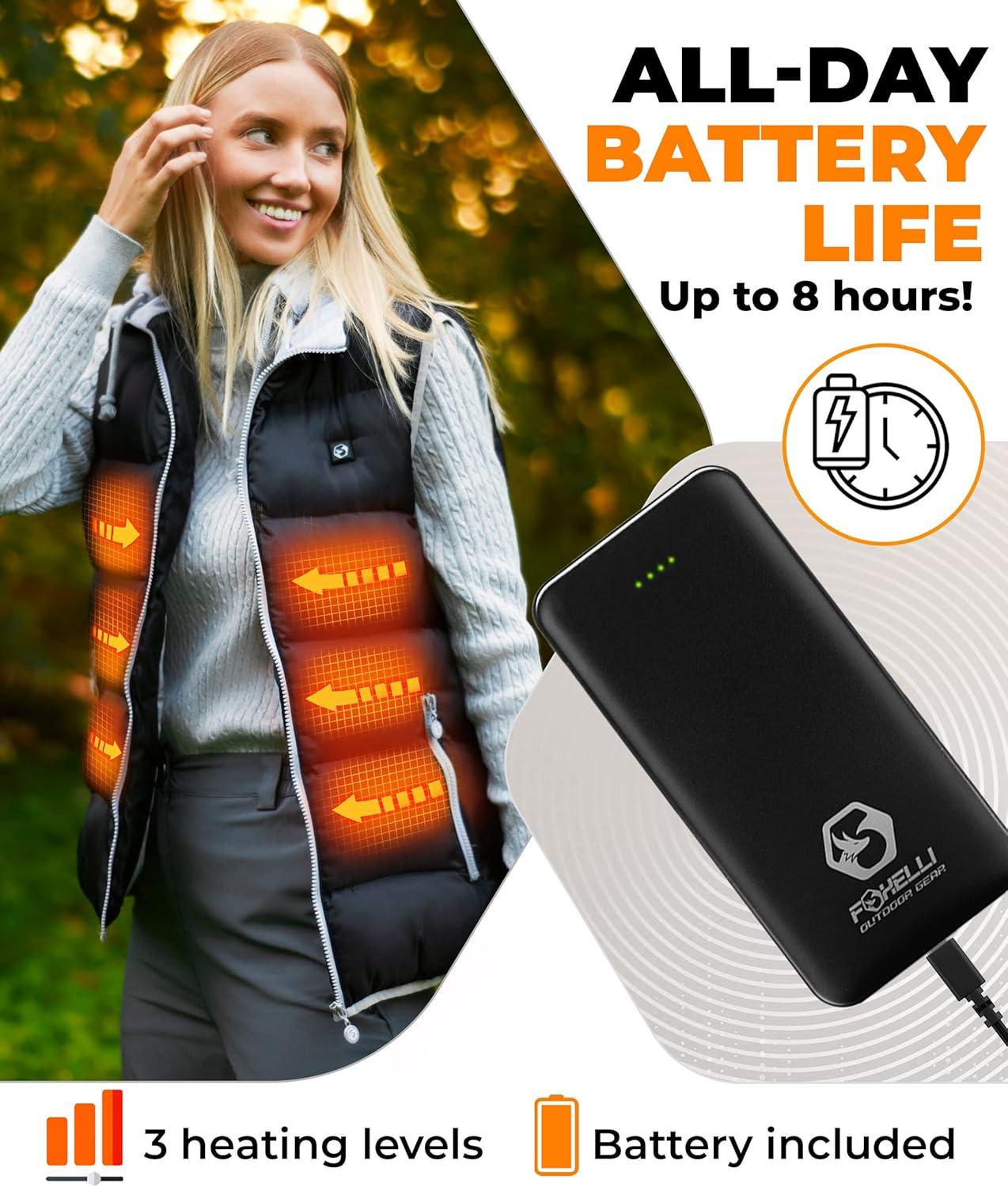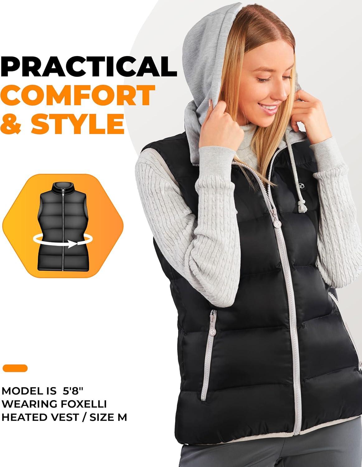 Foxelli Women’s Lightweight Heated Vest with Battery Pack(Black)
