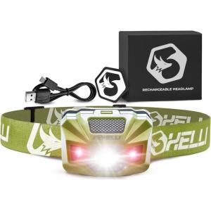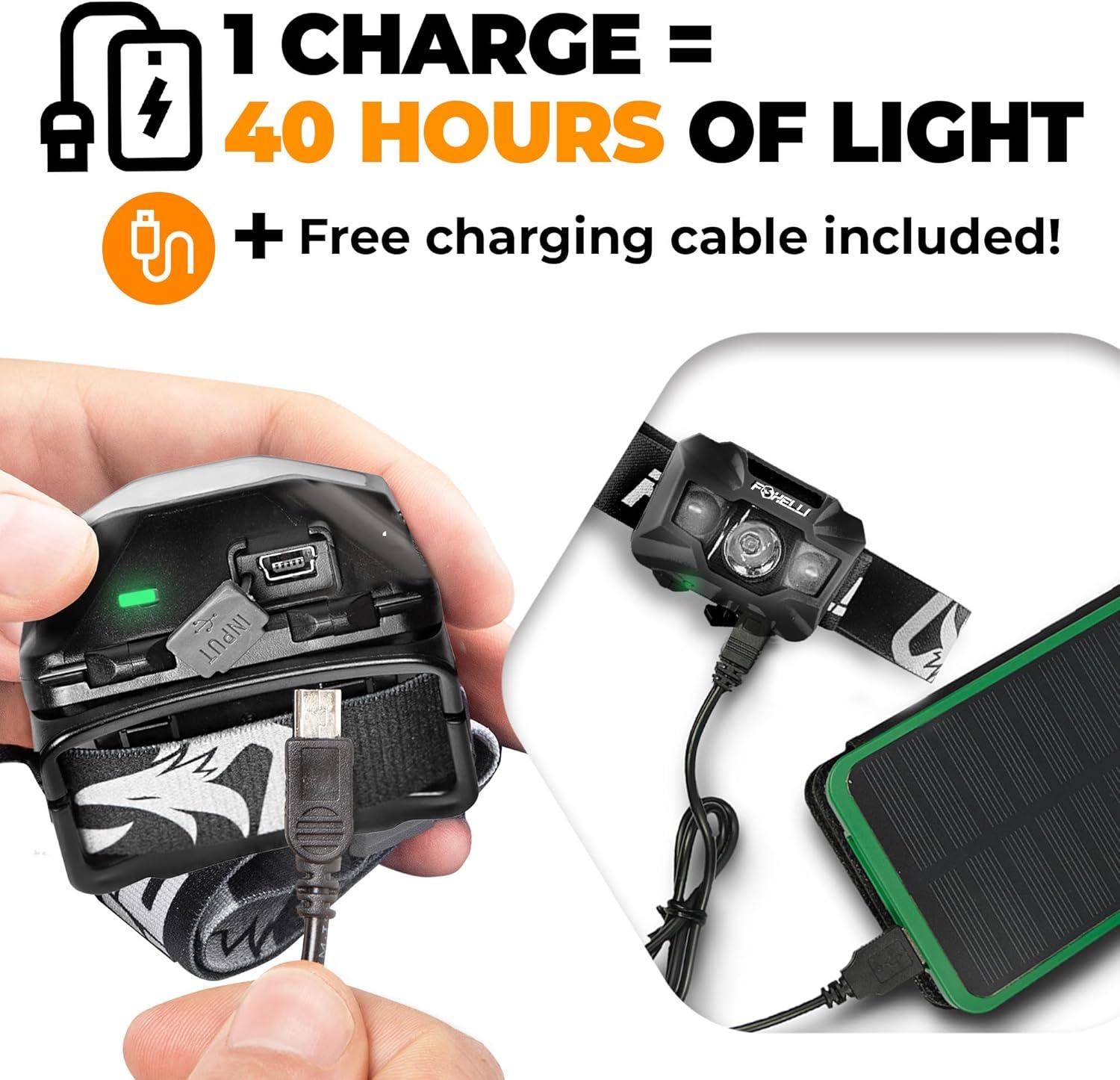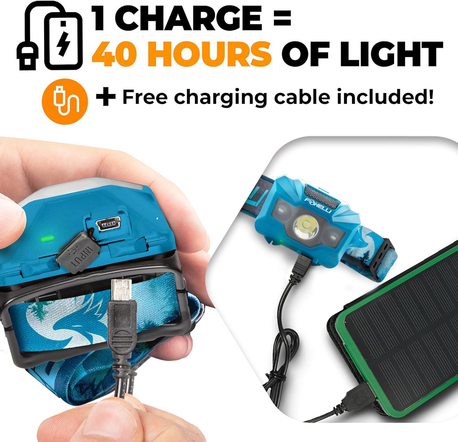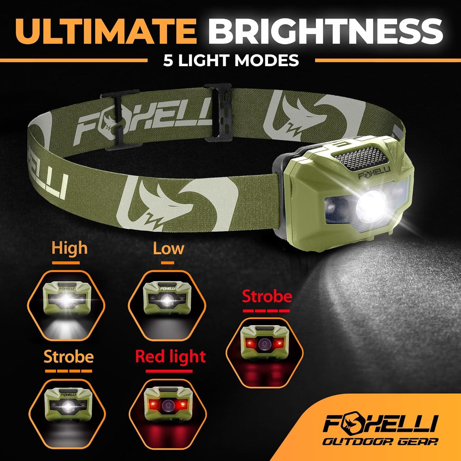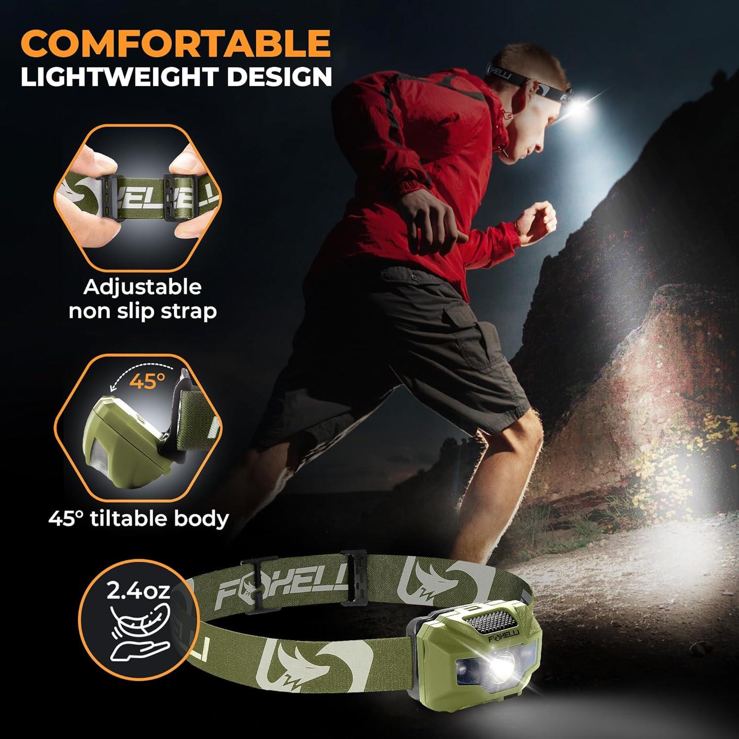 Foxelli USB‑C Rechargeable LED Headlamp – Ultra‑Light 2.4 oz & Bright 180 Lumens – Red/White Light, 5 Modes, IPX5 Waterproof, 40 h Runtime for Trail Running, Camping, Hiking(Forest)