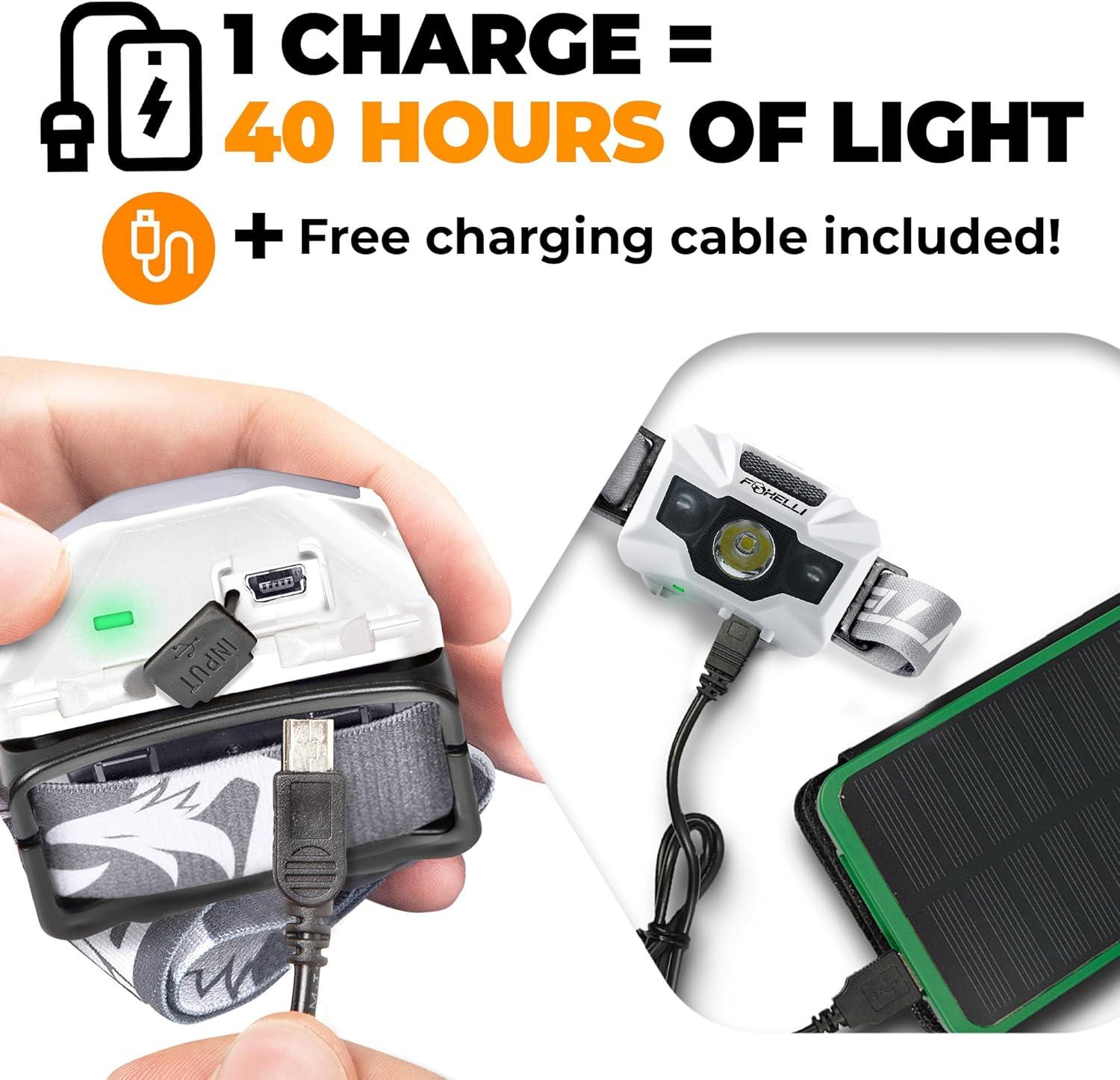 Foxelli USB‑C Rechargeable LED Headlamp – Ultra‑Light 2.4 oz & Bright 180 Lumens – Red/White Light, 5 Modes, IPX5 Waterproof, 40 h Runtime for Trail Running, Camping, Hiking(White)