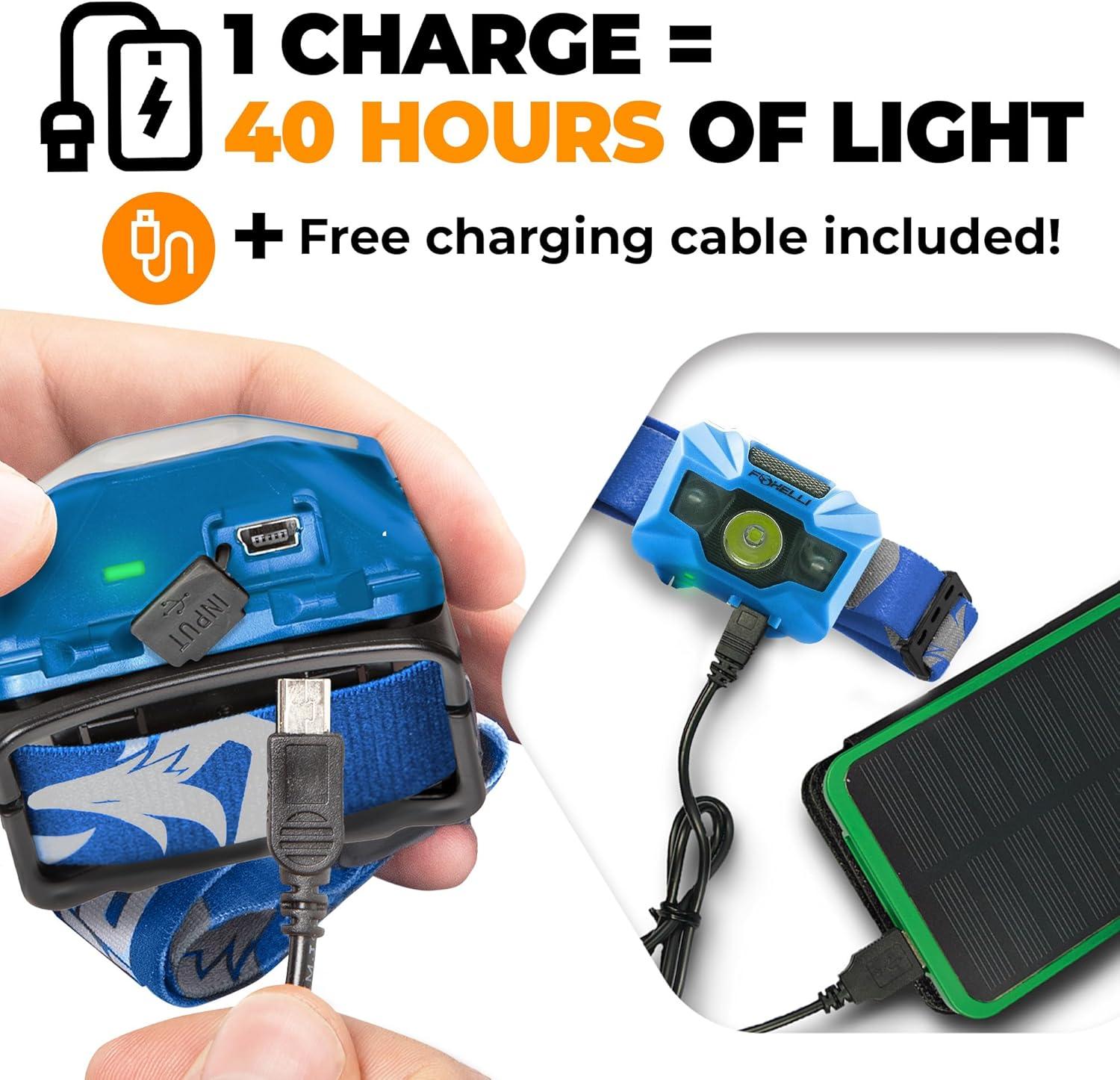 Foxelli USB‑C Rechargeable LED Headlamp – Ultra‑Light 2.4 oz & Bright 180 Lumens – Red/White Light, 5 Modes, IPX5 Waterproof, 40 h Runtime for Trail Running, Camping, Hiking(Blue)