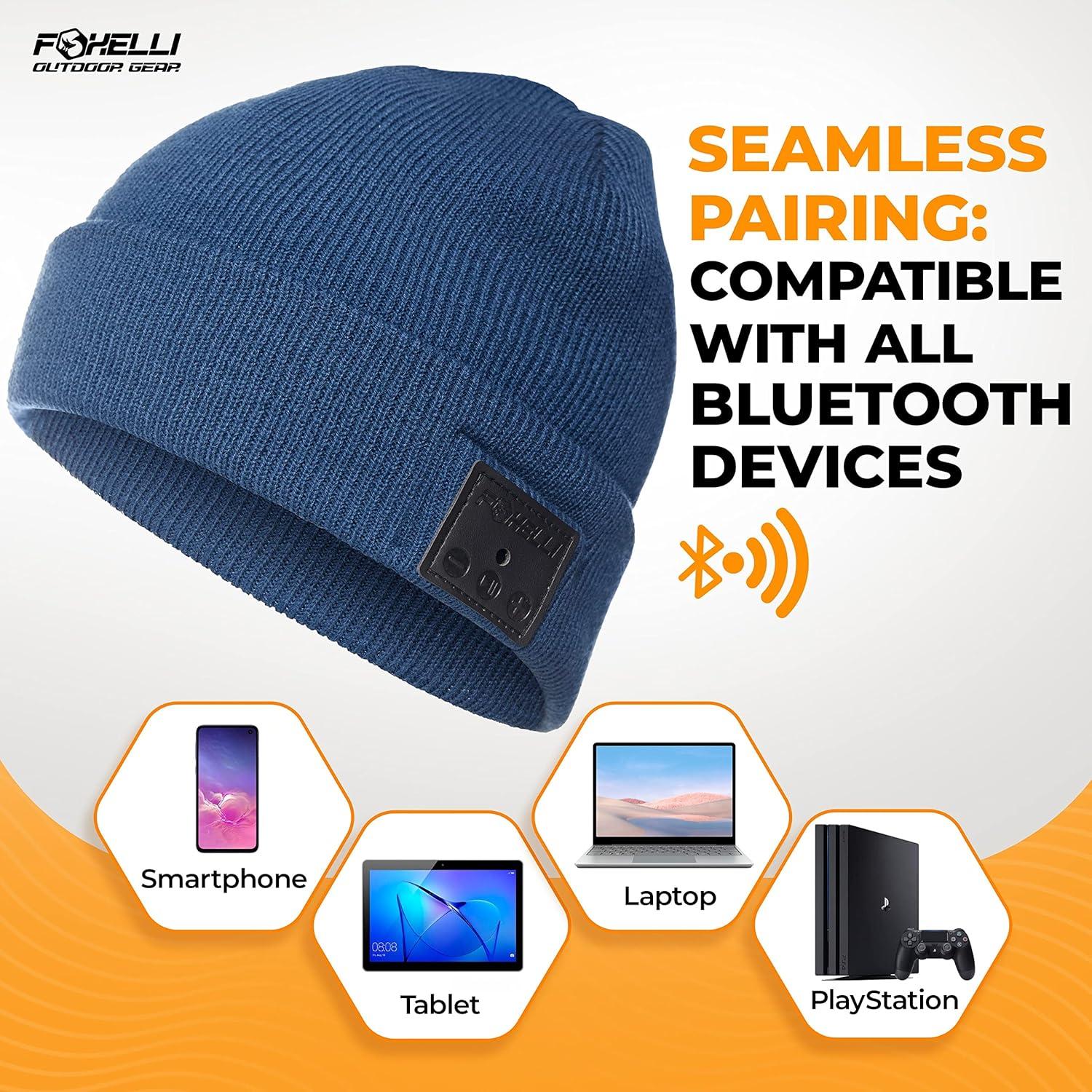 Foxelli Bluetooth Beanie Hat – 15-Hour Battery, Built-in Mic, Fully Washable, Perfect Tech Gift for Men & Women(Blue)