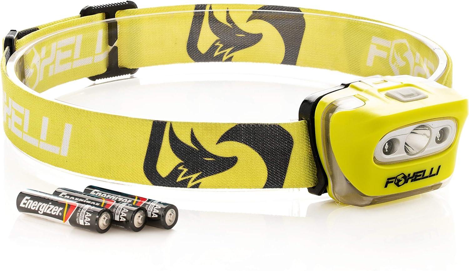 Foxelli LED Headlamp Flashlight for Adults & Kids, Running, Camping, Hiking Head Lamp with White & Red Light, Comfortable Headband, Lightweight & Waterproof, 3 AAA Batteries(Neon Yellow)
