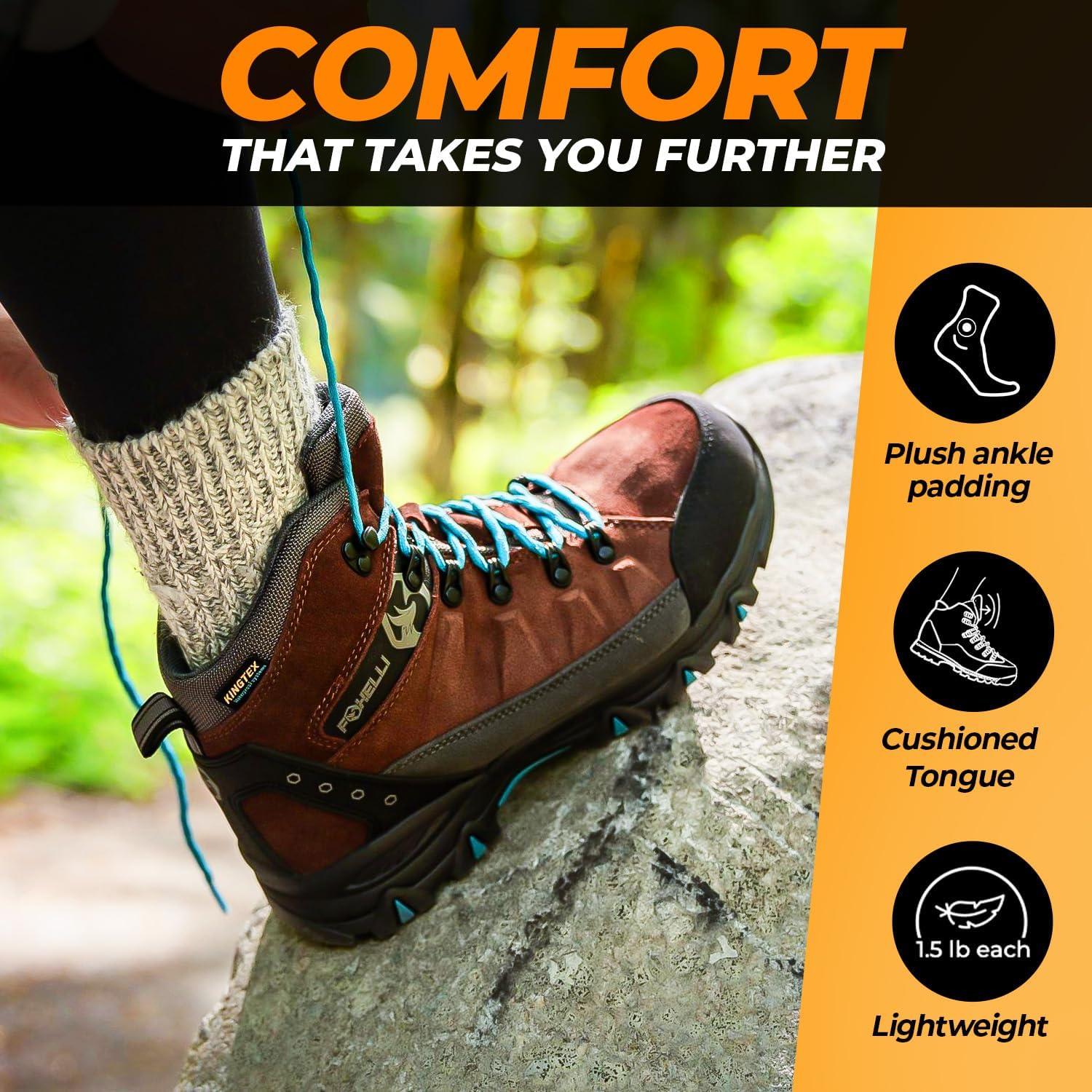Experience the perfect blend of comfort, durability, and support with Foxelli’s hiking boots for women. Built to excel on rugged trails and provide all-day comfort during casual walks. Whether you're trekking through wet terrain or exploring dry paths, you can rely on these boots to keep your feet comfortable, secure and stable. Our womens hiking boots are built with a high-cut design that provides superior ankle support, reducing the risk of injury on uneven or challenging terrain. The boots feature a KingTex waterproof membrane that keeps your feet dry, even in the harshest weather conditions, while the breathable mesh ensures that your feet stay cool and comfortable. No more worrying about sweaty feet or blisters during long hikes—these breathable womens boots offer optimal air circulation for all-day freshness. Experience lasting comfort with shock-absorbing midsoles that protect your joints from impact, while removable soft insoles provide cushioned relief during extended use. The flexible suede upper allows unrestricted movement, so whether you're hiking uphill, downhill, or through rocky terrain, you’ll move with ease. The deep lug pattern on the rugged outsoles provides reliable grip, keeping you secure on slippery or uneven surfaces. From muddy trails to rocky paths, these womens hiking boots waterproof design ensures you stay sure-footed every step of the way. With a roomy toe box and the option of wide sizes, you can enjoy a customized fit with no break-in time required. These boots are ready to wear right out of the box, delivering long-lasting comfort and performance whether you’re running errands, embarking on a day hike, or a multi-day trek. Our hiking boots women are built to handle the outdoors while providing the comfort and support you need to tackle any trail with confidence. Ready to explore? Step into Foxelli boots and conquer your next adventure with ease.